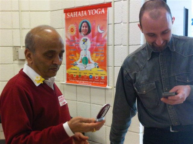 Gladys is completing the picture for us: “The day at the Seniors’ Center was an enjoyable one, we had a lot of people stop and visit us, and they were curious to know about Sahaja Yoga Meditation, so we’ve explained the best we could about the “Chakras” etc. and they wanted to come and visit the different Centers/Classes we have in Ontario, to learn it ‘properly”. Again there were some Spanish speaking people that had seeing it for the first time and were impressed about the energy that they felt after we did the self-realization experience with them and the chakra workshop; so impressed that they’ve felt to promise to visit us in the future. ( and some of them had come already to the Burlington and Oakville classes!). All and all was a complete success!”‘