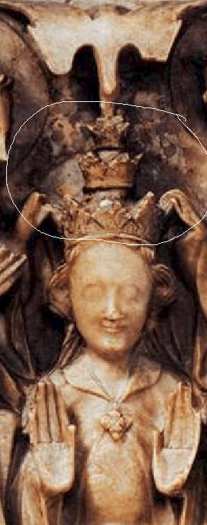 Finally, an amazing revelation in this alabaster statue is the fact that it was known that the Holy Spirit, known in our dear Sahaja Yoga, as the Paramchaitanya, plays a very active role in bestowing these supreme blessing at the top of Sahastrara: the Dove, which symbolises the Holy Spirit is in fact holding in its beak the thirdCorona Aureola, the small crown at the very top, and is placing it on top of the two other crowns held by God the Father and Her Son. “