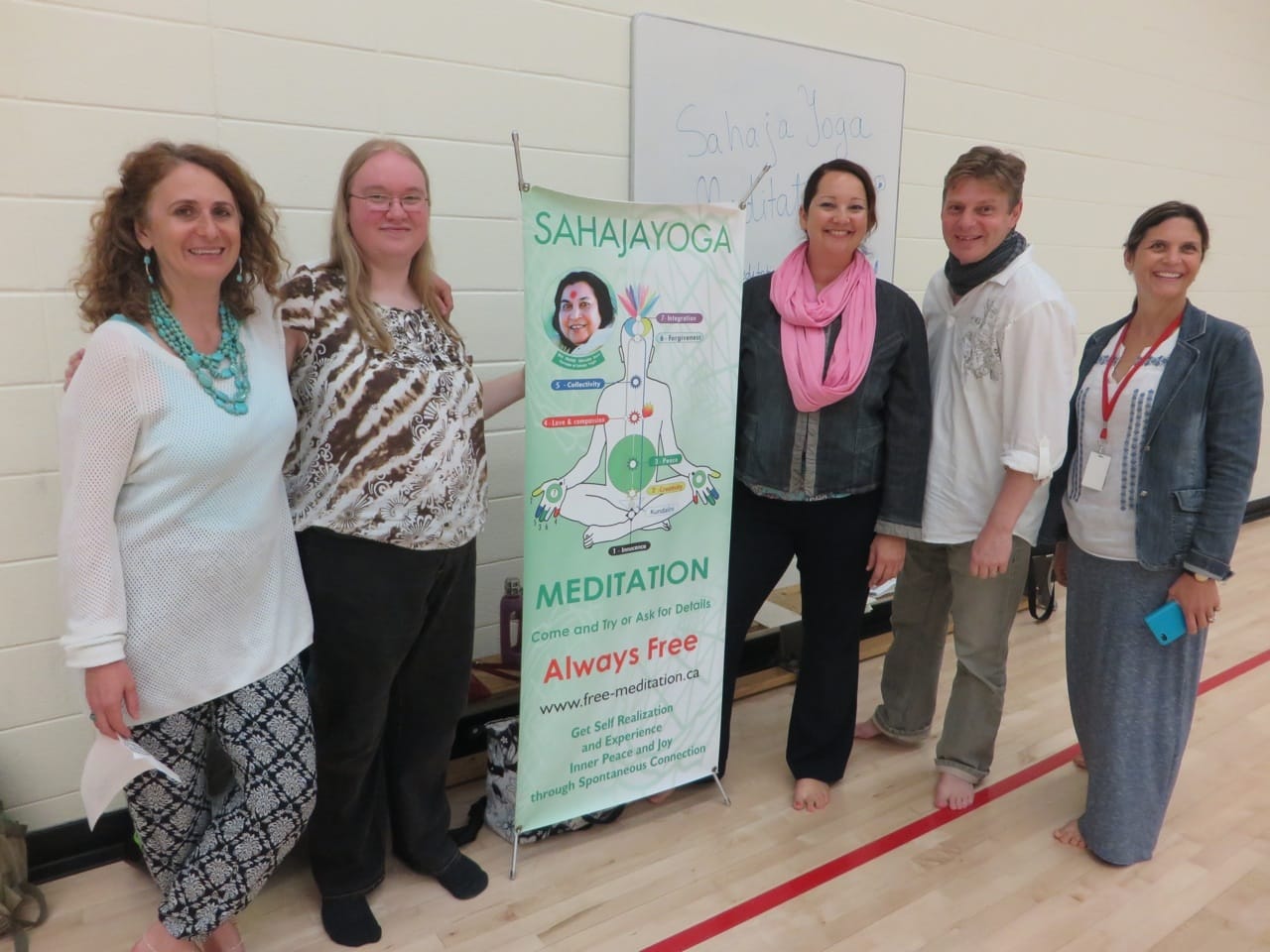 Tim Bruce (freshly arrived to Canada from UK, the night before!!), Ioana and Paula We met early in the morning, before starting our marathon of offering to about 100+ students three consecutive “Find Inner Peace with sahaja yoga meditation” workshops intertwined with interactive performances of live music and poetry. Enjoy our Report!