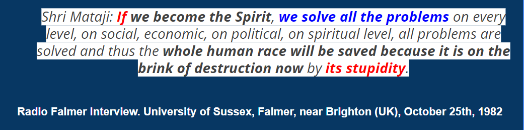 As one can see from the quotes above, as Sahaja Yogis we feel compelled to volunteer in our communities and offer meditation sessions that help people attain inner peace, inner satisfaction and feel genuine love, understanding and compassion for each other. In fact, with sahaja yoga meditation practice, one feels transformed from within. The stupidity of our selfishness and ego-driven life becomes obvious to us and we easily let go of its toxic influence.