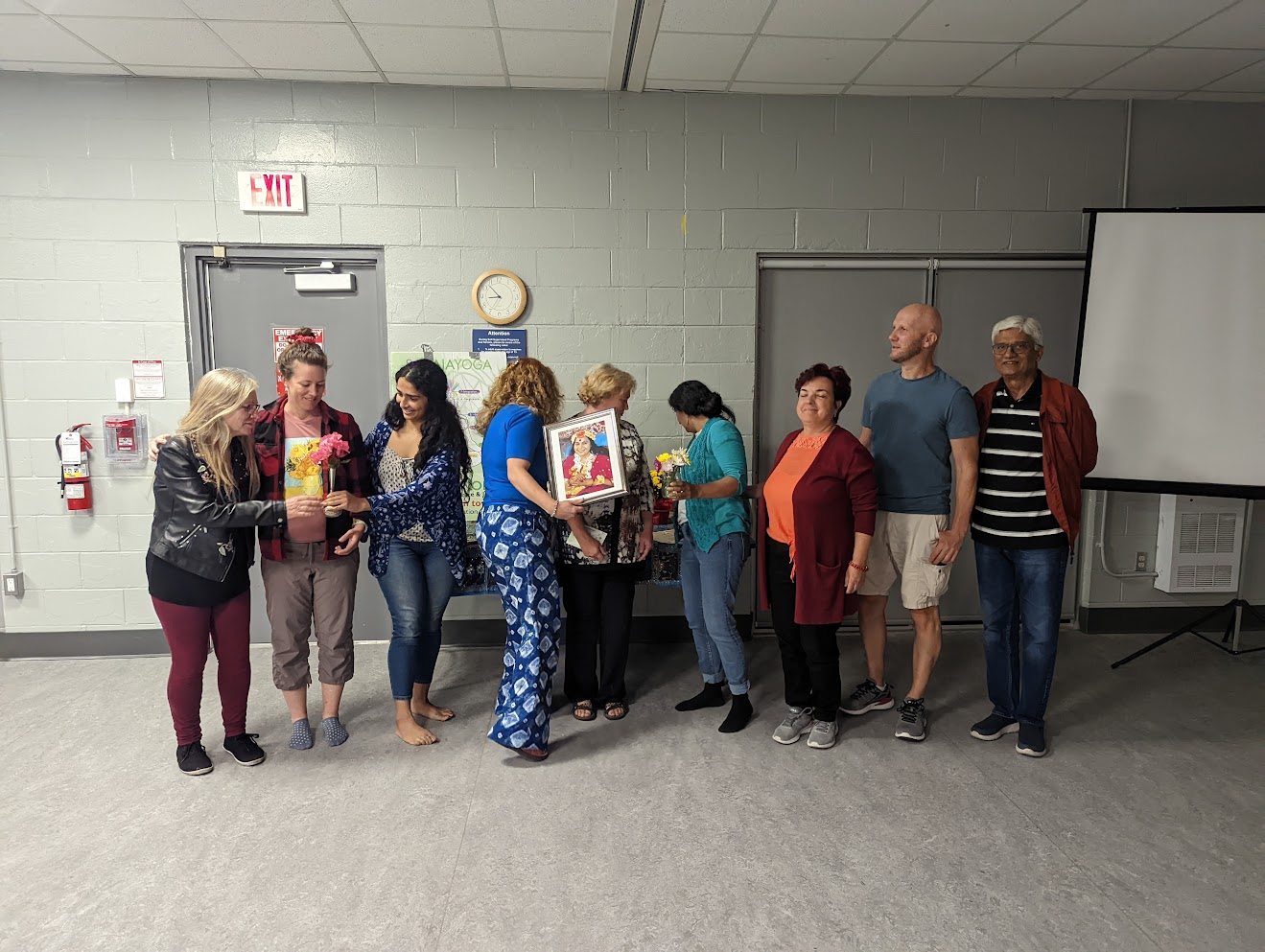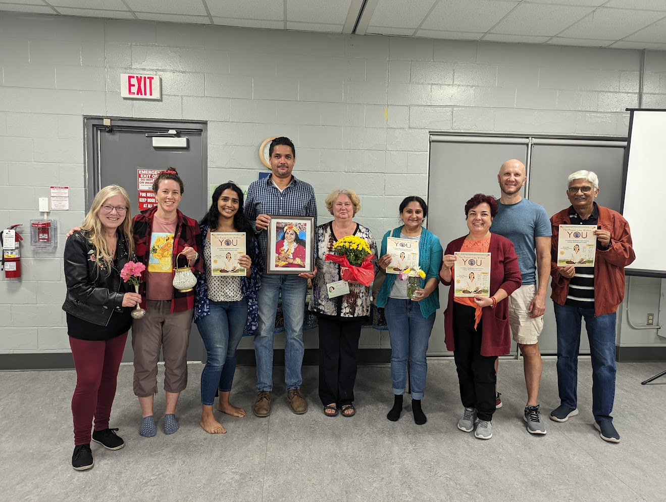 Our traditional “sahaj family photo” with everyone that stayed after the session to help wrapping up and “clearing” the room. Thank you dear “old” and “new” Sahaj Family members! Everyone took posters to spread the “good news” in our Halton community and beyond! 🙂