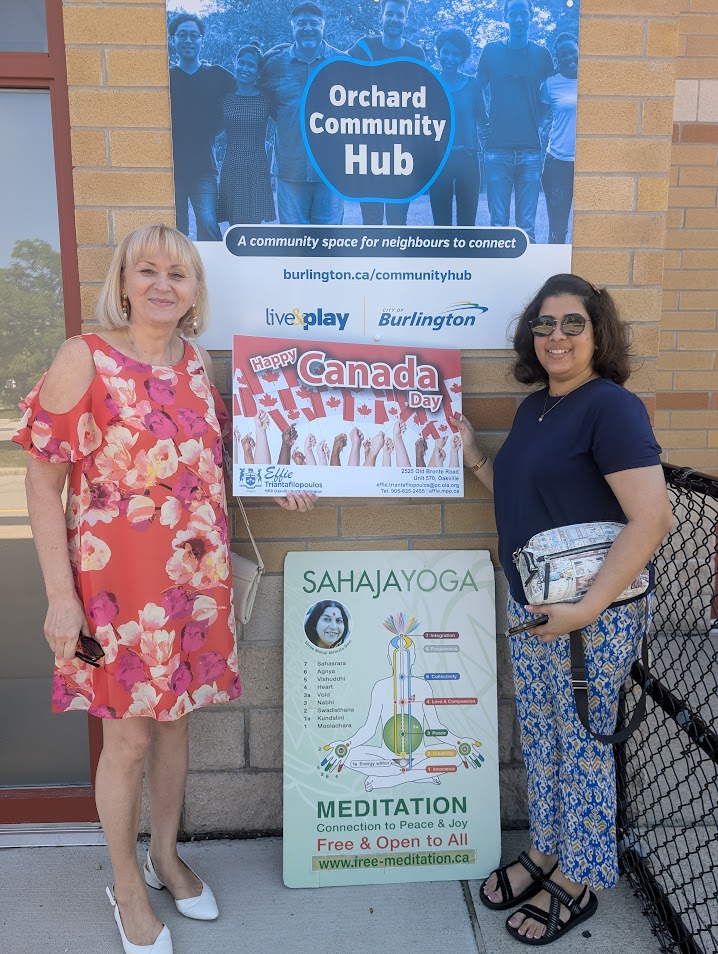 You can see Halyna in the photos above with her new friends that joined the weekly meditation classes we are offering in Burlington. Dewduni is from Sri Lanka, she joined last year our meditation classes and on Sunday we had an intimate Going Deeper Seminar with the attention on Canada Day and for peace in the world. Halyna enjoyed the meditation very much as well learning the mantras we sang for every chakra/ energy center placed along the central channel of evolution,