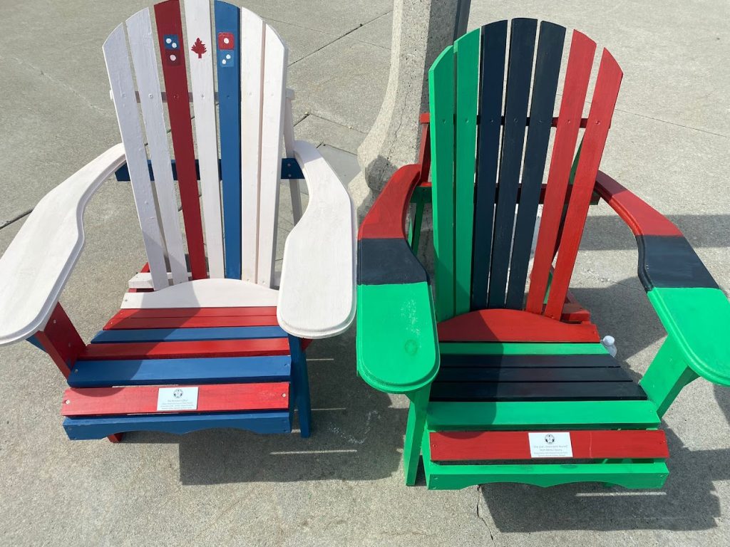 Some interesting trivia and proof of connectiveness: Did you know that these chairs were painted by and / or creatively designed by no other than the Director of Halton’s Afro-Caribbean Festivals as part of the FAME program / Halton Youth arts Cultural Craft Committee? Students were involved by Vanda to contribute with painting three other chairs and they earned community involvement hours to go towards the required hours for Ontario Secondary school diploma. Great job!