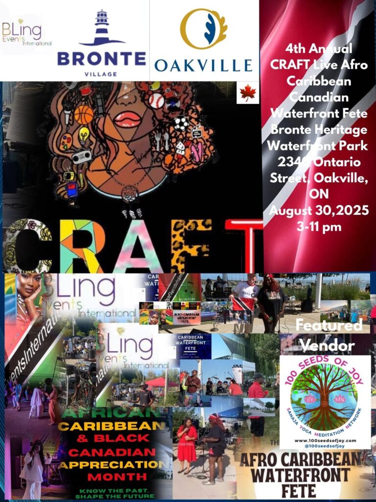 Did you know? Our 100 Seeds of Joy team is Featured at Bronte’s 2025 Live Afro-Caribbean Canadian Waterfront Fete! When? On Saturday, Aug 30, 2025 from 3pm to 11pm