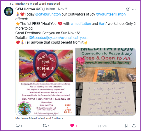 Please read some of the original feedback notes shared below, as well the reposting of our Next Events as support from the Mayor! Our 100 Seeds of Joy events deserve your support too! Feel free to contact us or check our Calendar of Events !