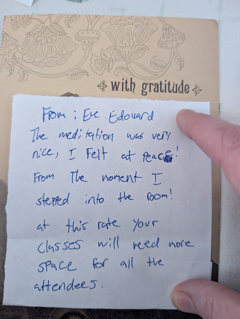 “The meditation was very nice, I Felt at Peace! From the moment I stepped into the room!
